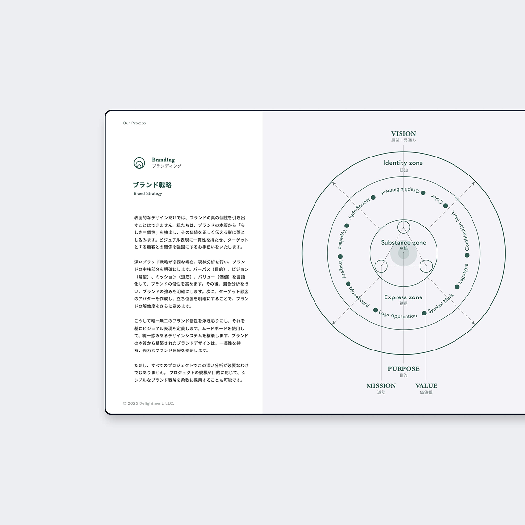 ブランドの個性を引き出し、一貫したアイデンティティを構築するブランディングの考え方とプロセスをご紹介します。